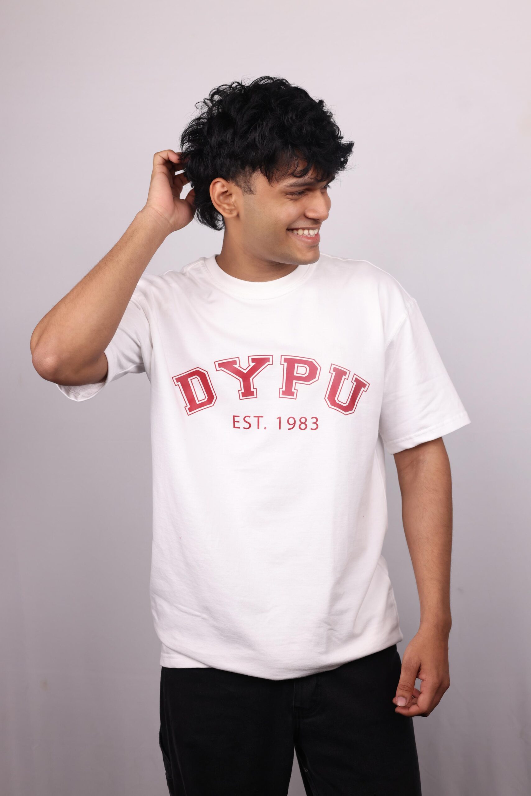 “DYPU” in red with a white outline, adding a collegiate aesthetic.